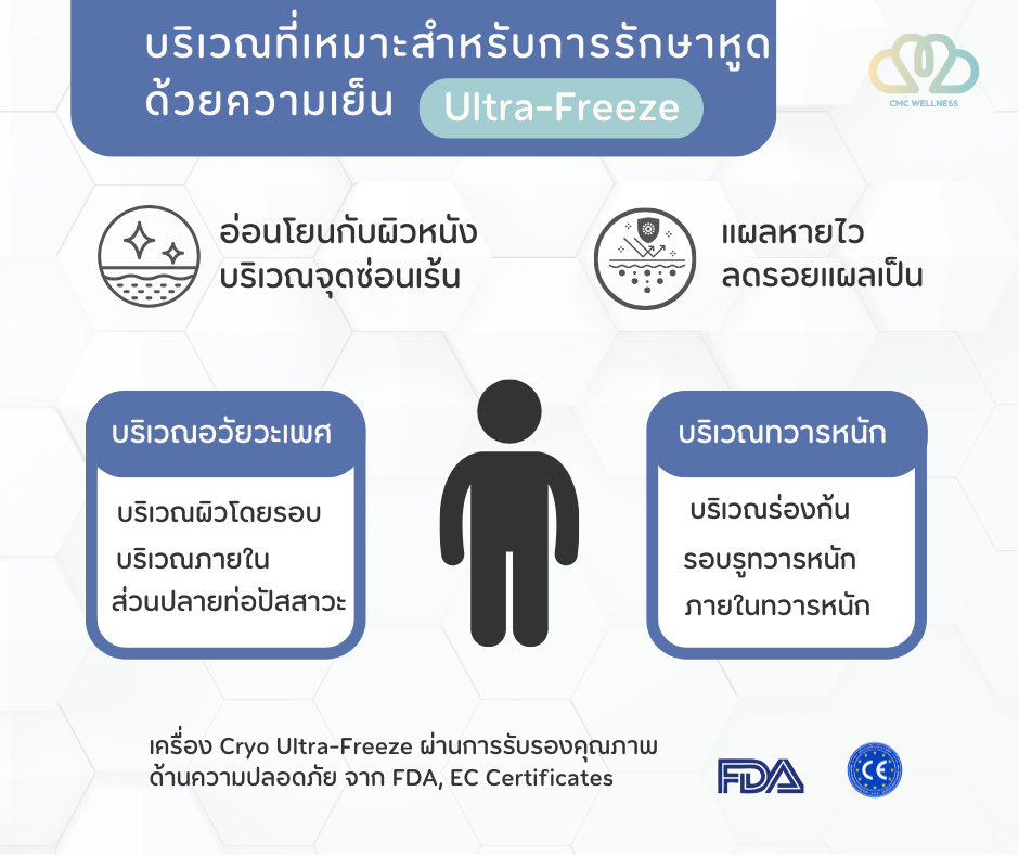 การรักษาด้วยวิธีจี้ไอเย็น เหมาะรักษาหูดบริเวณไหน...