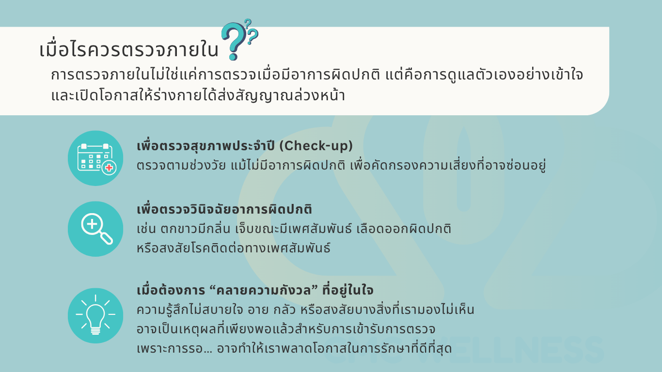 ตั้งแต่การตรวจภายใน ตรวจปากมดลูก อัลตร้าซาวด์มดลูกรังไข่ และ ตรวจฮอร์โมน