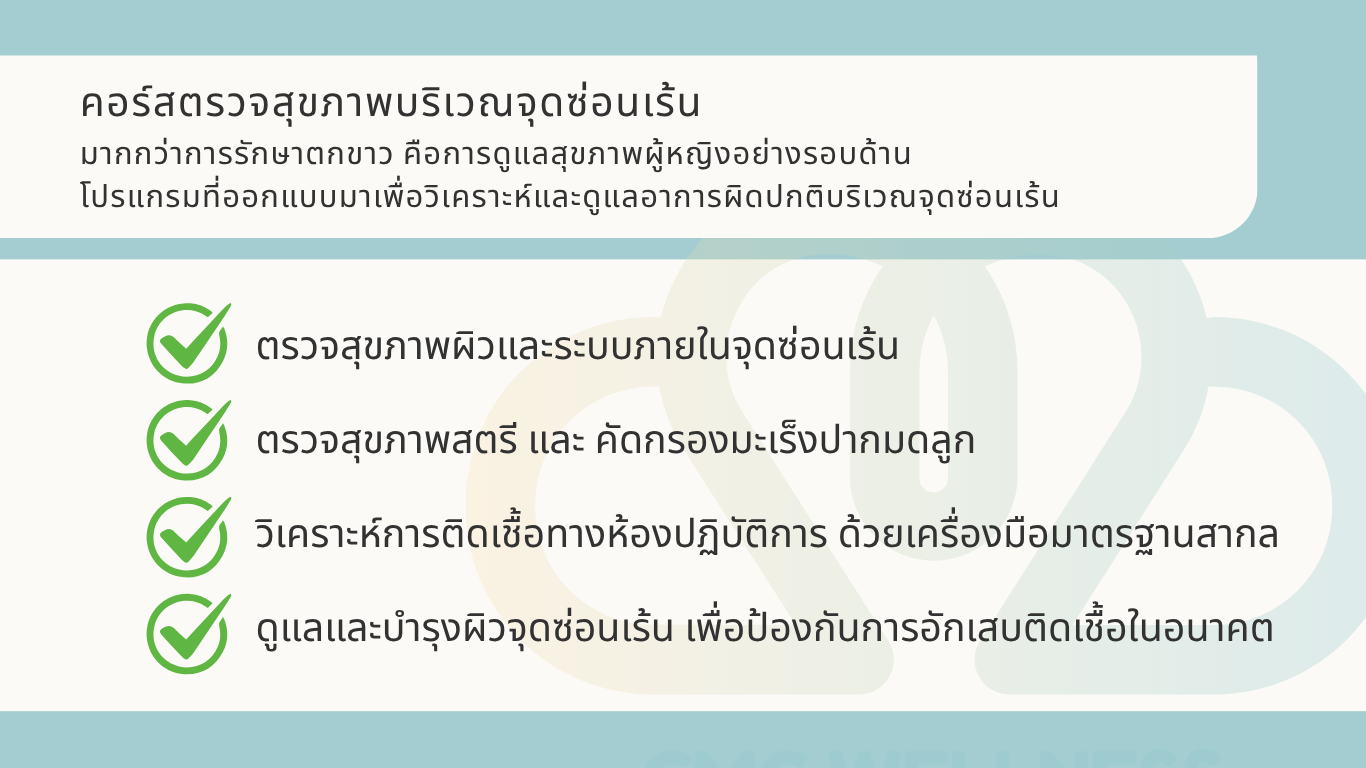 คอร์สตรวจรักษาตกขาว พร้อมดูแลสุขภาพจุดซ่อนเร้น